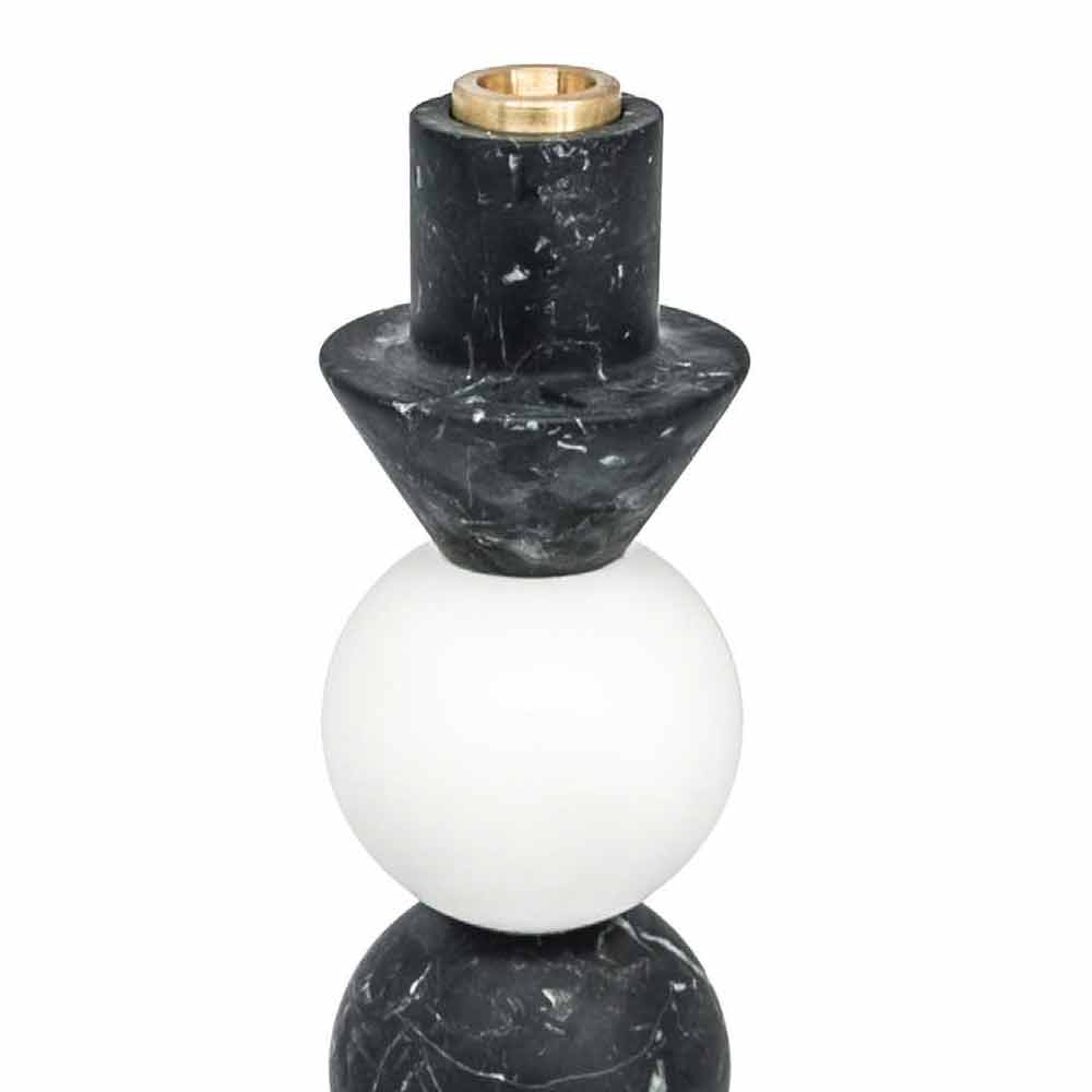 Portavelas artesanal fabricado íntegramente con mármol y latón dealta calidad . Debe considerarse una pieza única ya que cada bloque de mármol utilizado se diferencia de los demás en vetas y matices. El mármol blanco procede de la cantera de Poggio Silvestre, fuente de mármol de primera calidad clasificado desde el siglo pasado, mientras que el mármol negro Marquinia se extrae de las canteras españolas.
