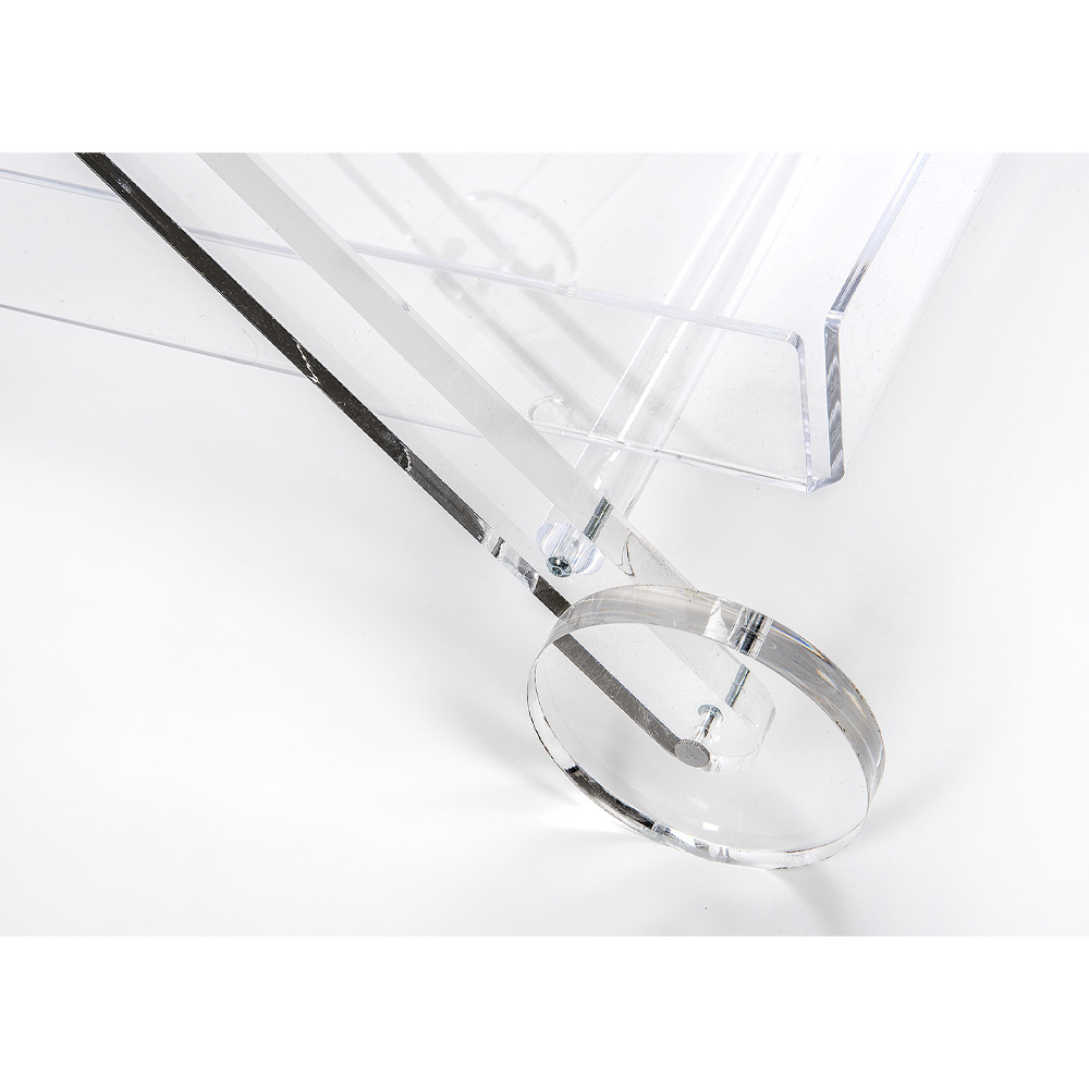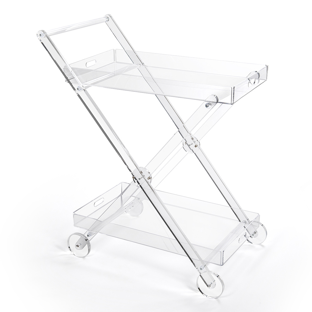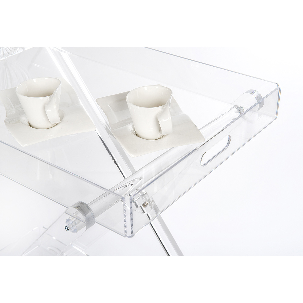 El práctico y versátil carrito para alimentos, fabricado en plexiglás 100% PMMA de polímero virgen, tiene un diseño moderno y lineal , compuesto por 2 estantes que lo hacen muy útil como carrito auxiliar en el ambiente del hogar. Un complemento en el que la estética se une a la funcionalidad.