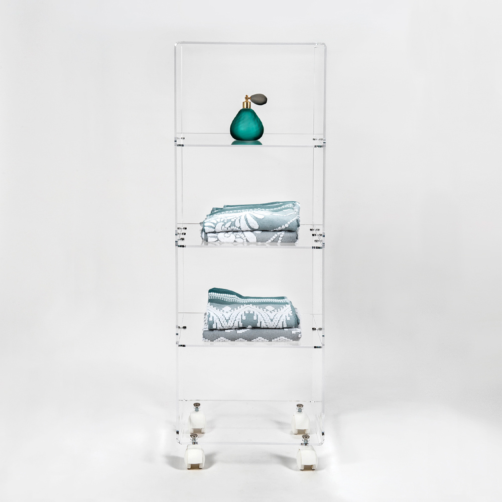 Cada estante de este carro es un escenario que realza lo que contiene, gracias a la transparencia cristalina del plexiglás de primera elección. La materia prima, plexiglás polímero 100% virgen , asegura un brillo y brillo que se mantienen inalterables en el tiempo, un compromiso de calidad que se puede ver y sentir.