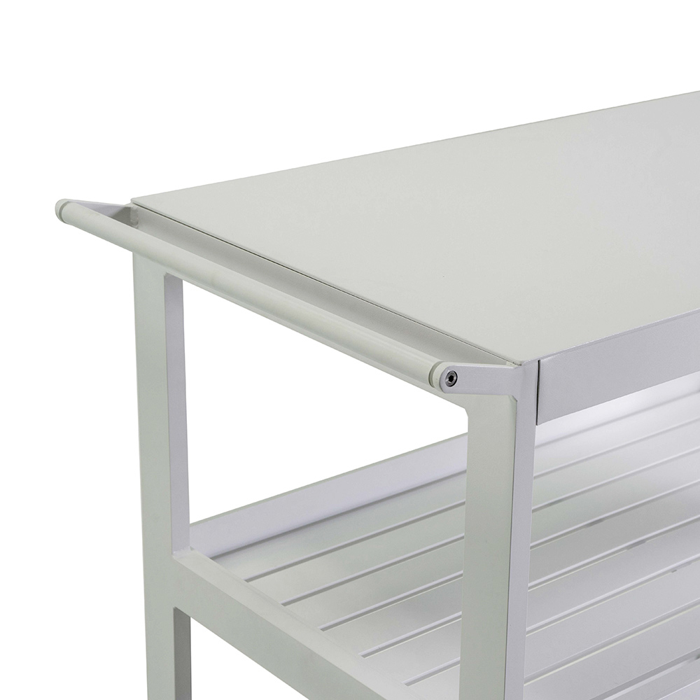 El marco de aluminio garantiza ligereza y resistencia a la corrosión, asegurando que el carrito mantendrá su belleza con el paso del tiempo, incluso con un uso frecuente en exteriores. Ya sea una tarde de relax en el patio o una noche de entretenimiento, este carrito añadirá un toque de elegancia funcional a cualquier ocasión.
