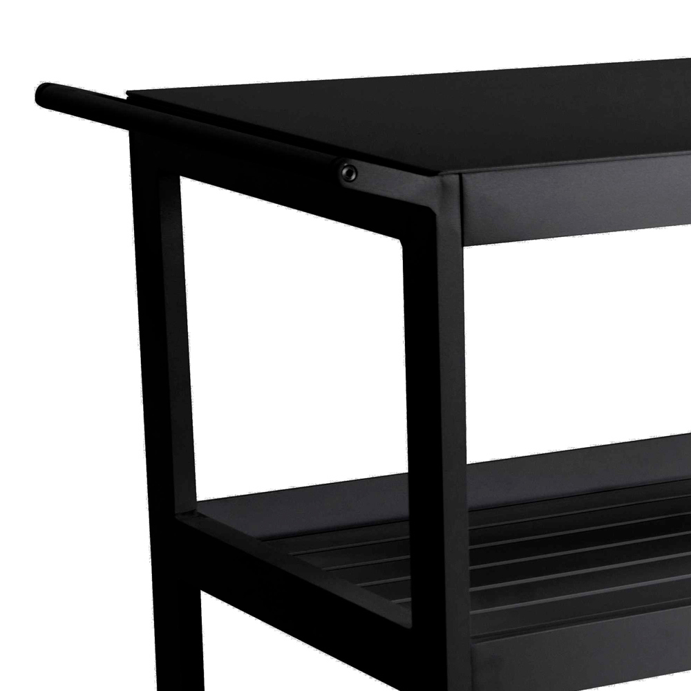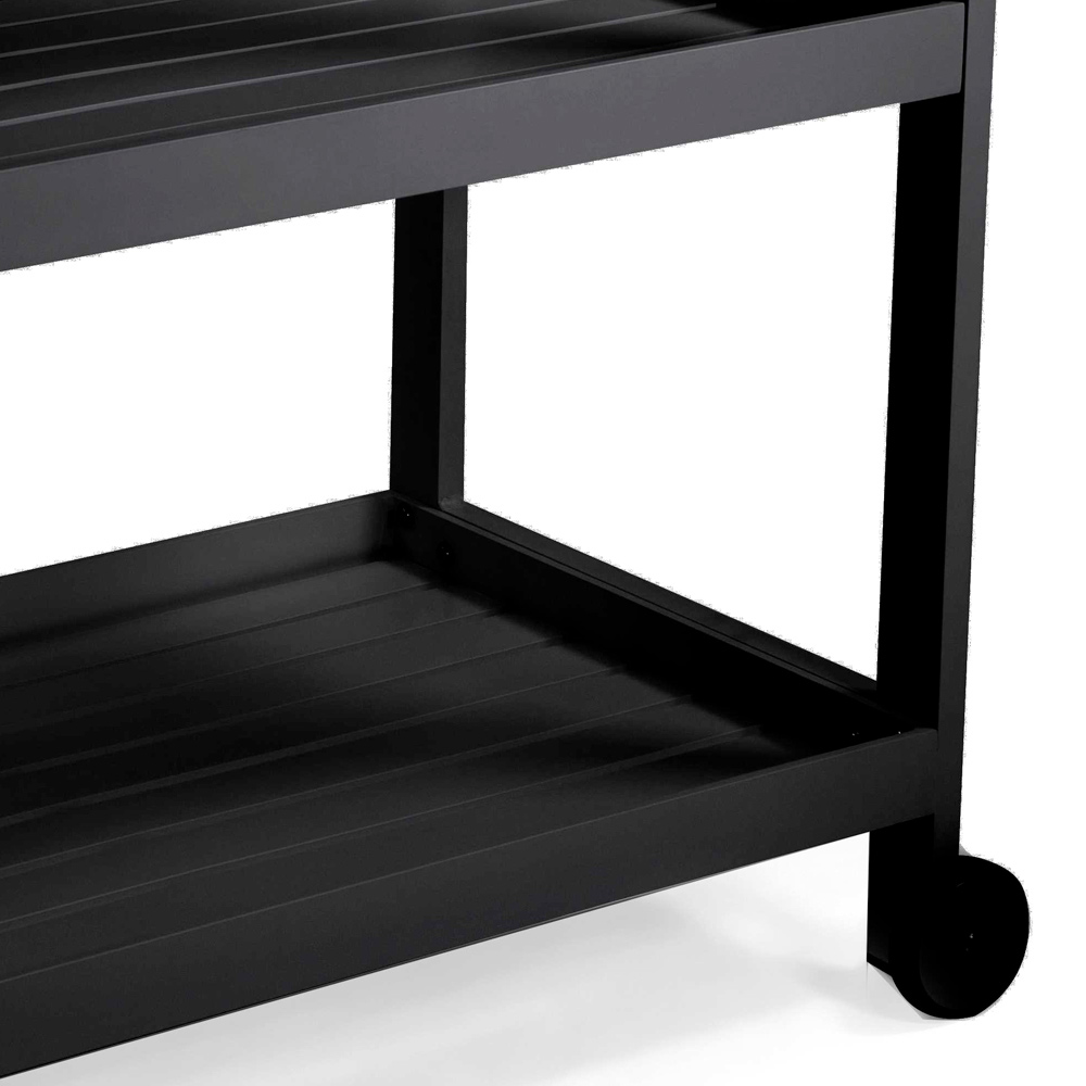 El carrito cuenta con tres espaciosos estantes, perfectos para guardar bebidas, vajilla o plantas, por lo que es ideal para entretener a los invitados o como apoyo adicional en cualquier espacio exterior. Gracias a sus robustas ruedas , se puede desplazar fácilmente hasta donde se necesite, haciéndolo extremadamente práctico y versátil.