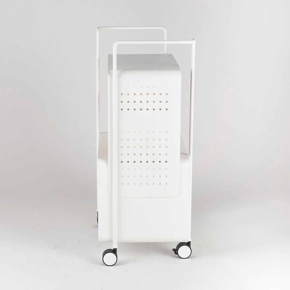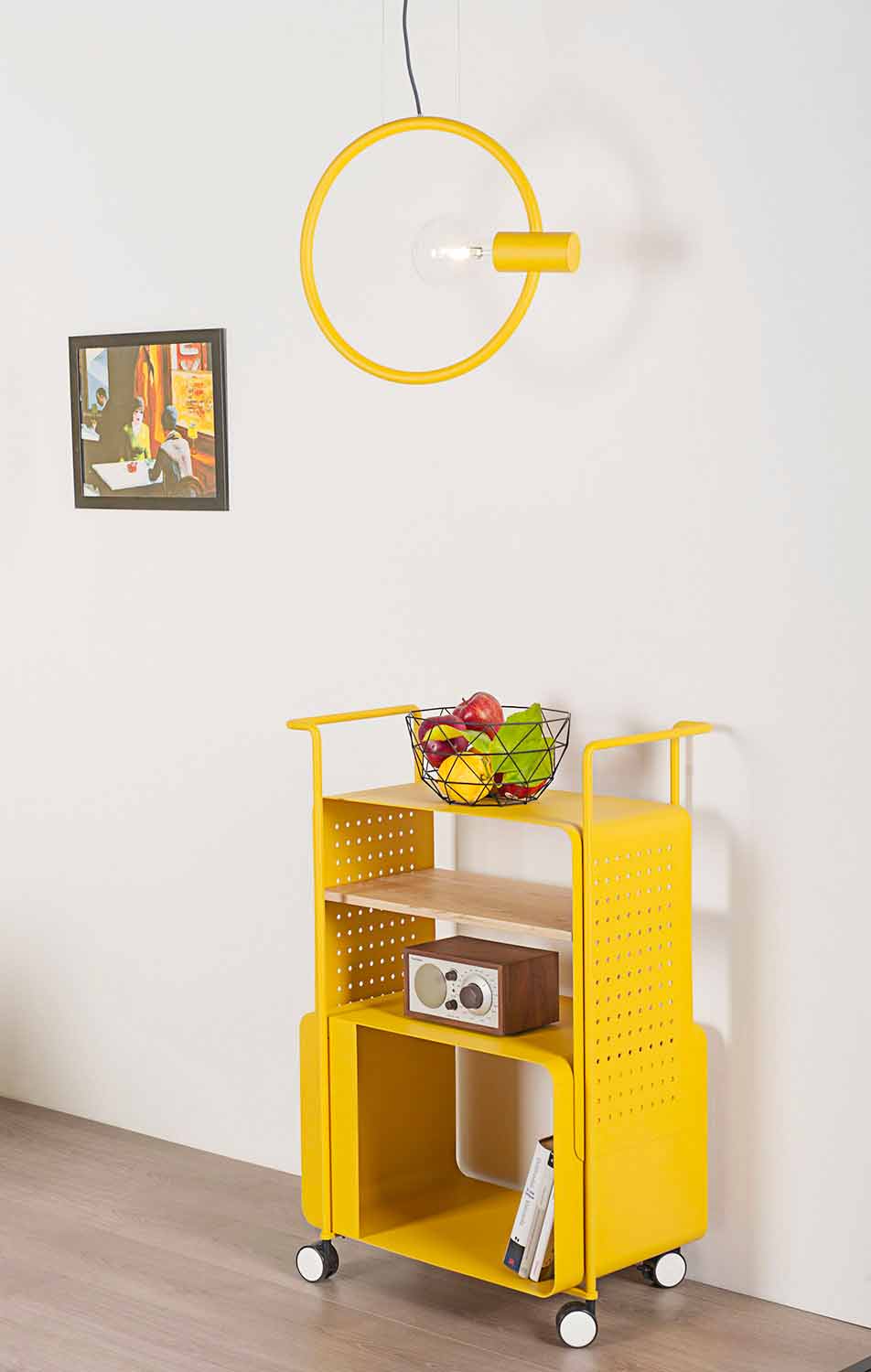 Este carro representa un elemento particularmente versátil ya que se puede utilizar en diversas situaciones y ambientes como la cocina, el salón o incluso la oficina. Gracias a su diseño joven y moderno, es ideal para ambientes con muebles extravagantes e inusuales pero también para estilos más minimalistas para dar color y personalidad. Fabricado íntegramente en Italia , su estructura es de acero pintado RAL e incluye 4 prácticos estantes en los que guardar los más variados objetos, uno de los cuales es de madera de fresno que ayuda a dar un toque de elegancia. También cuenta con un juego de 4 ruedas que te permiten mover el carro fácilmente a través de las dos asas laterales.