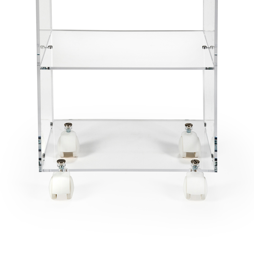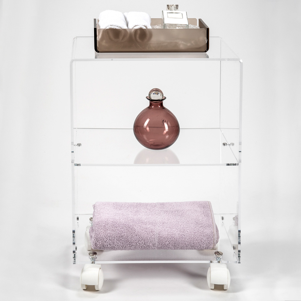 Carro versátil que encarna la esencia de la practicidad con un toque de encanto transparente . He aquí una pieza que no es sólo un accesorio de decoración, sino una verdadera celebración de la funcionalidad moderna.