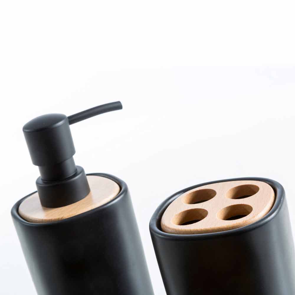 Conjunto de baño de accesorios modernos en cerámica Carsoli y madera.
