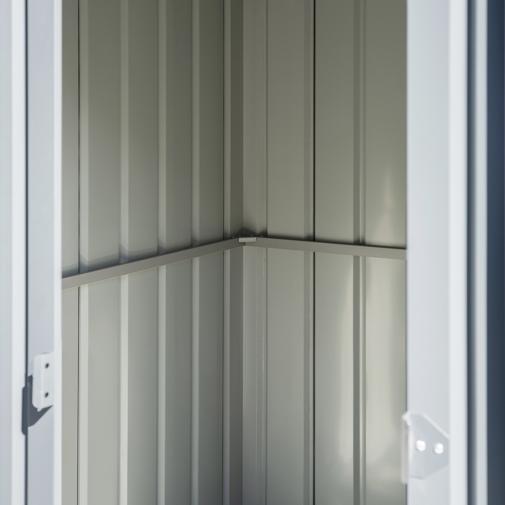 Esta caseta de jardín está diseñada para ofrecer una solución eficiente y elegante para almacenamiento al aire libre. Fabricado con chapa galvanizada de alta calidad, es resistente a la corrosión , lo que garantiza durabilidad y protección para sus herramientas y equipos.