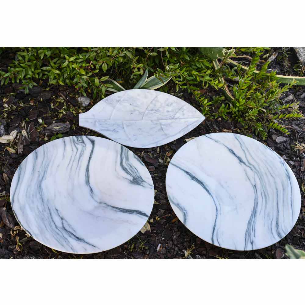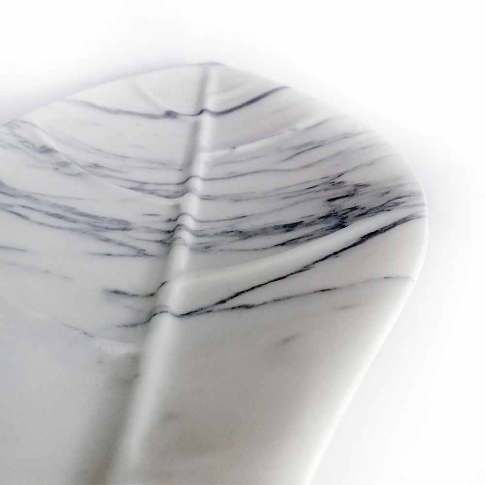 Centro de mesa realizado en mármol Arabescato con forma de hoja Made in Italy.