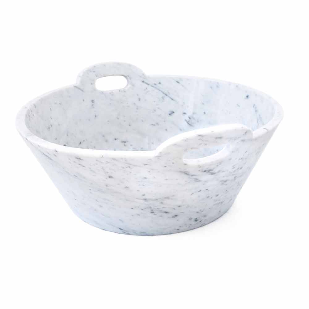 Cesta de diseño de alta calidad en mármol blanco de Carrara, fabricada en Italia.