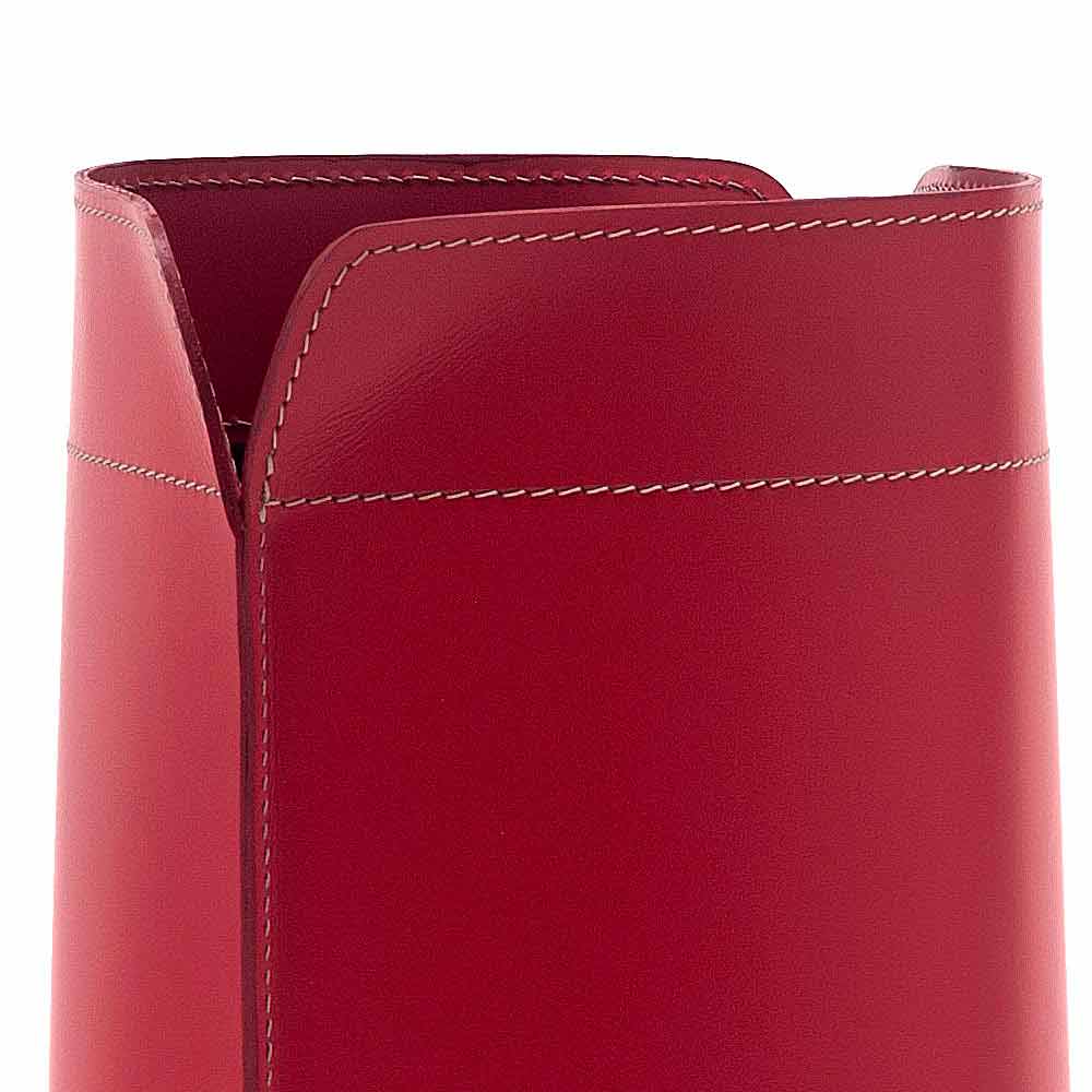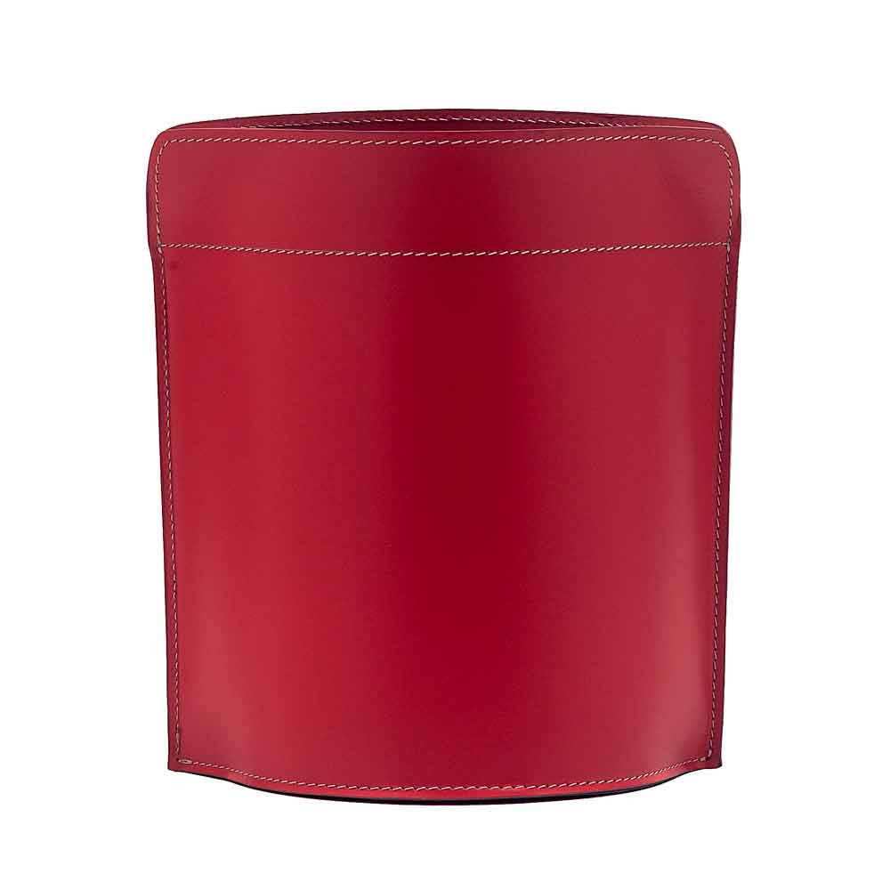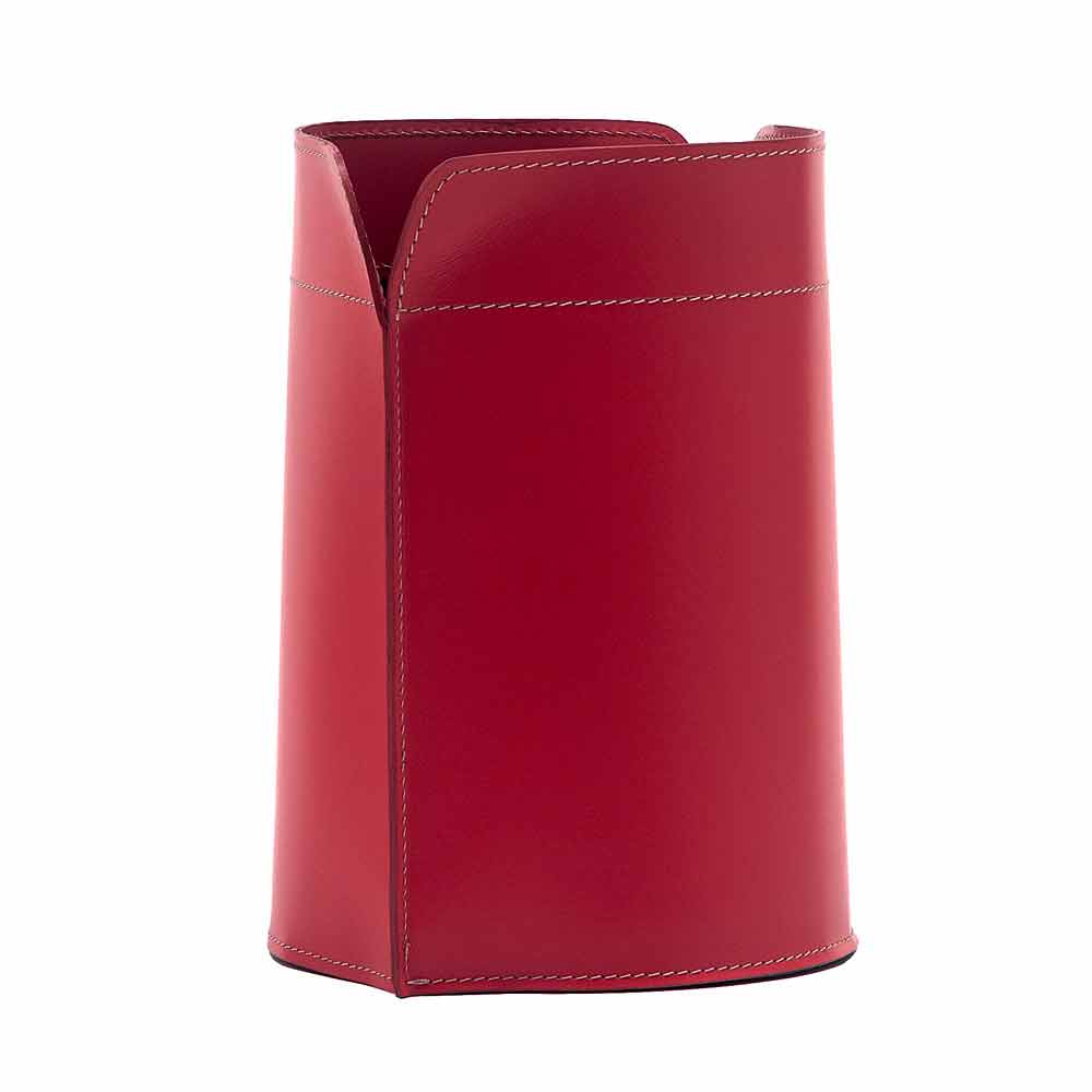 Canistro de papelera de cuero de basura canistro. Canistro es un elegante mueble adecuado para colocarlo en la oficina o en la sala de estar o en el dormitorio. Lo práctico y el diseño se unen, dando valor estético y decorativo a un complemento puramente funcional. Está hecho de cuero regenerado precioso, disponible en diferentes colores. El fondo es de madera contrachapada y también está cubierto de cuero. Canistro es producido enteramente en Italia por artesanos expertos. Las formas sinuosas y la fascinación de la creación artística representan la síntesis perfecta de Made in Italy.