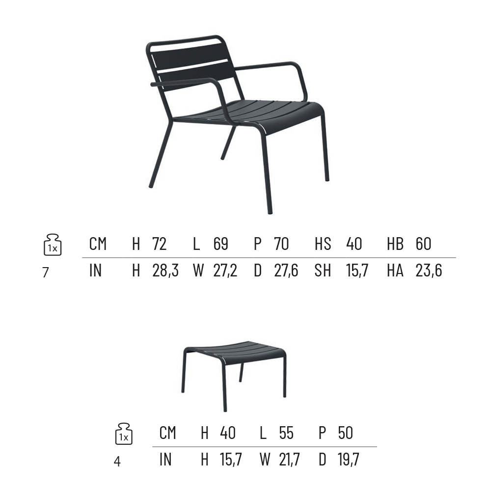 NB : la tumbona y el reposapiés están disponibles en 7 colores adicionales.