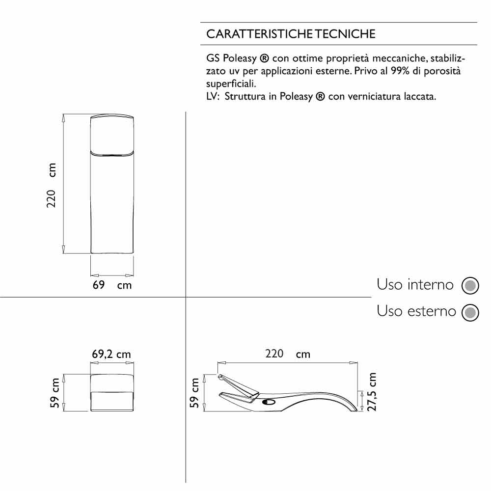 Zoe , original e innovadora, le permite cambiar sin problemas de la posición acostada a la sentada. Zoe cuenta con una amplia gama de colores y una fantástica versatilidad de uso: se puede insertar en espacios abiertos como en ambientes cerrados, no sufre temperaturas de + 60 ° a -20 ° y todos sus dispositivos metálicos son íntegramente en aluminio o Acero 316 para resistir sin problemas a los agentes atmosféricos.