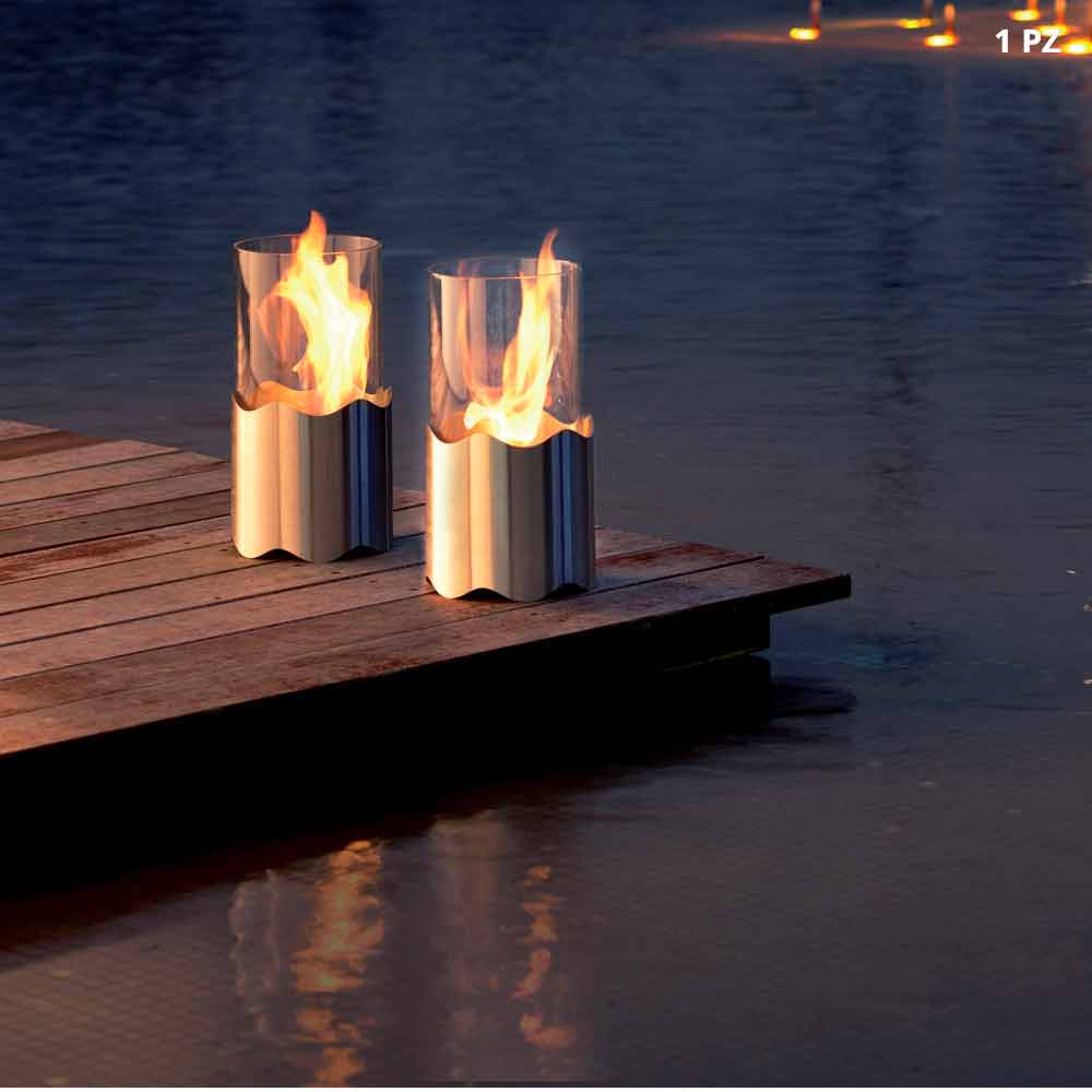Chimenea Bioetanol de Sobremesa en Acero Inoxidable y Cristal Leon