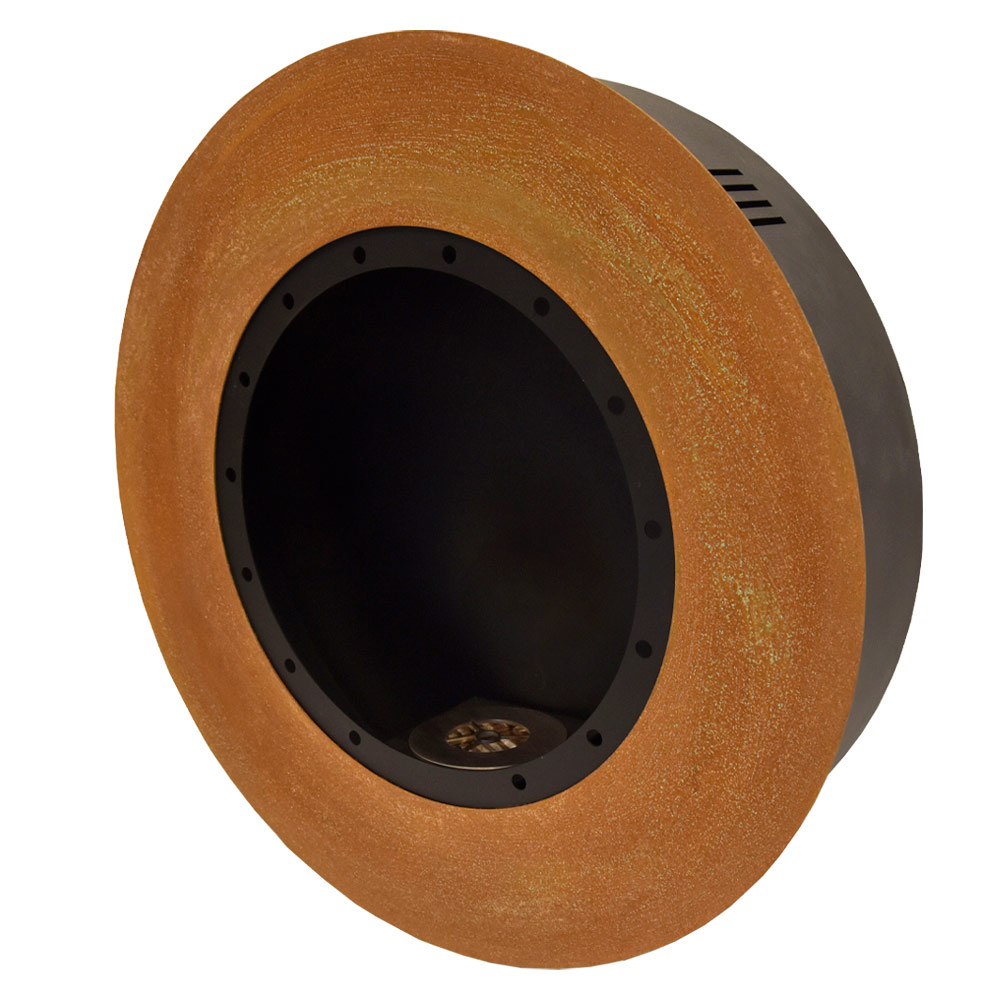 Biochimenea de pared de diseño moderno y redondo en acero, fabricada en Italia.