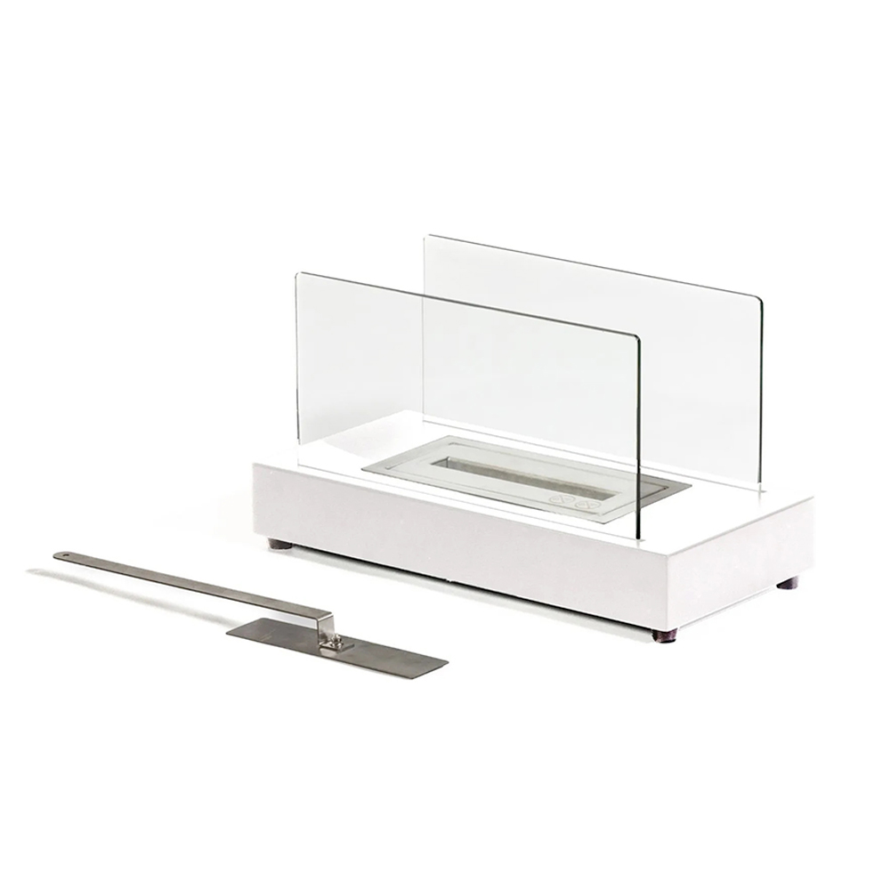 Chimenea de sobremesa de bioetanol con un diseño único. La plata es una pieza exclusiva que no puede faltar en tu hogar.
