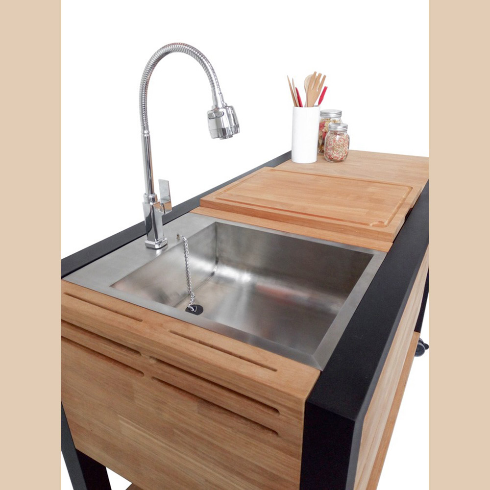 Cocina de exterior 140x65x93 cm de teca maciza y aluminio - Convivial