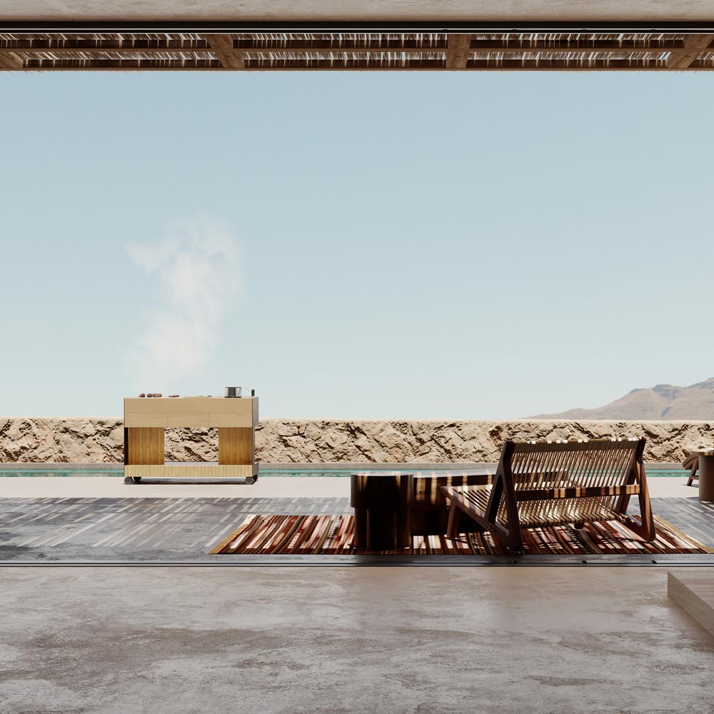 Esta cocina de exterior representa la mezcla perfecta de funcionalidad y diseño contemporáneo, ideal para convertir cada momento al aire libre en una experiencia única. La estructura de aluminio con recubrimiento de polvo ofrece robustez y resistencia a la intemperie, mientras que las inserciones de teka maciza de alta calidad tratadas con Rubio Monocoat Hybrid Wood Protector añaden un toque de elegancia natural y calidez visual.