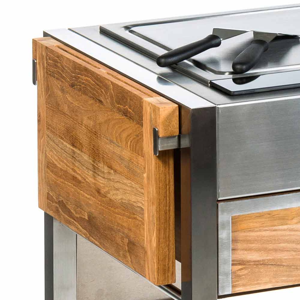 Cocina exterior sobre ruedas de acero y madera con Teppanyaki - Buoncalliope