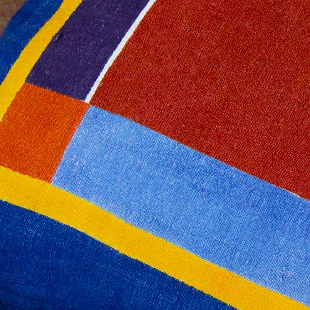 Cojín artesanal hecho de resistente y precioso lienzo antiguo de cáñamo y pintado completamente a mano de dimensiones estándar de una sola pieza de tienda con calidad hecha en Italia.