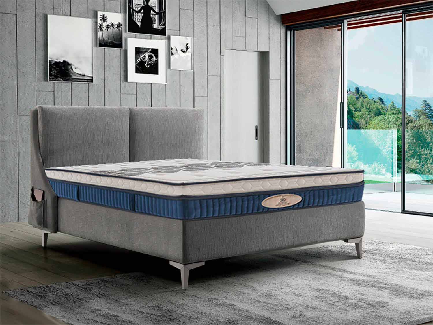 Composición de tapicería : Relleno 300 Gr / mq Pol. + 2 cm Soft12Fabric20% Viscosa - 80% Pol. Certificaciones de materiales : confianza en los textiles (prueba de sustancias nocivas, certifica seguridad e inocuidad para la salud y el medio ambiente); Eco amigable, dispositivo médico de clase 1 y probado determinatológicamente. Desmontable: sí y lavable a máquina. Manijas: sí. Higiénico, antiácaros y transpirable: sí. Pegamento natural: sí con certificación Simalfa (a base de agua). El pegamento natural se coloca debajo de la capa de memoria donde se eliminará efectivamente el exceso de humedad y calor, dándonos un descanso más cómodo. Expandido con agua: Sí.