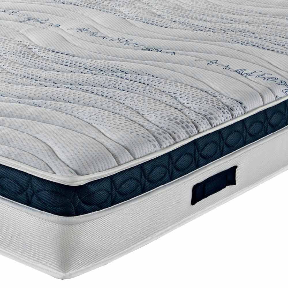 Colchón doble con memoria Aloe Feel, de 22 cm de altura, con relleno de lana y tela hecha a mano en Italia.