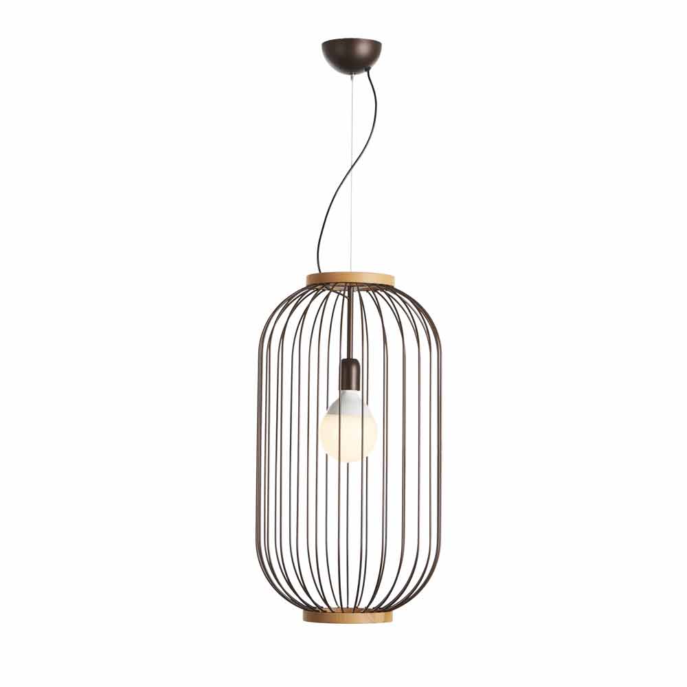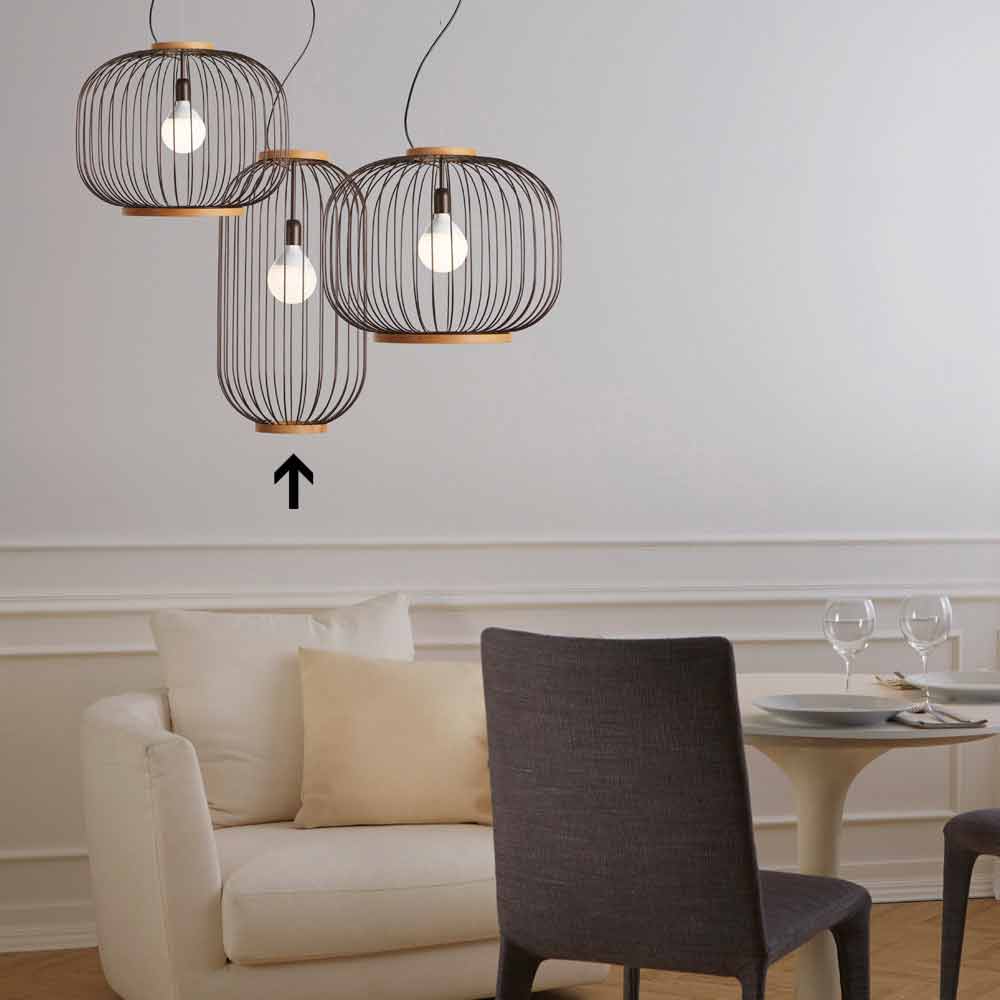 Lámpara de suspensión hechos de varilla de acero en forma de pintadas con polvos epoxídicos. Las dos bandas que cierran el cuerpo se redondean madera natural. Bibiana también está disponible en colores personalizados. Hacer una petición a: clienti@viadurini.it . Producto 100% Made in Italy. Bombilla: 1 x 60W max - E27 (no incluido).