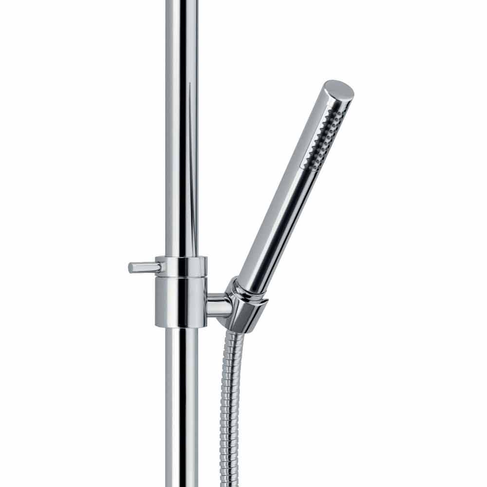 La presencia de los diversos accesorios aumenta aún más su funcionalidad , permitiendo obtener una columna de ducha tan bella y refinada de ver como práctica y sencilla de usar. El soporte deslizante permite regular la altura de la teleducha, mientras que la manguera de 150 cm permite utilizarla de forma totalmente manejable y cómoda.