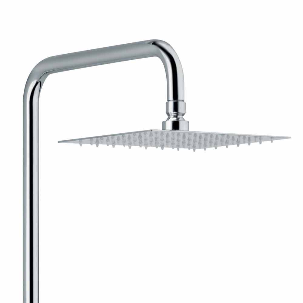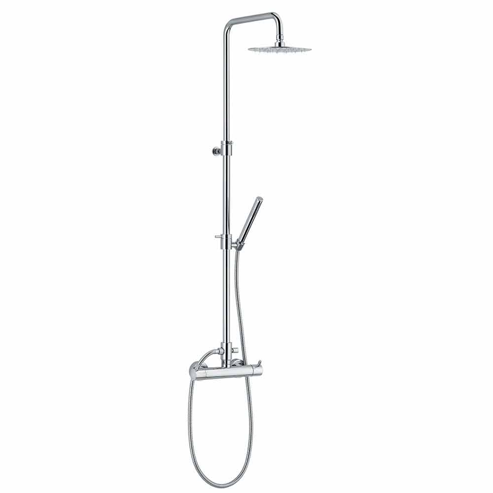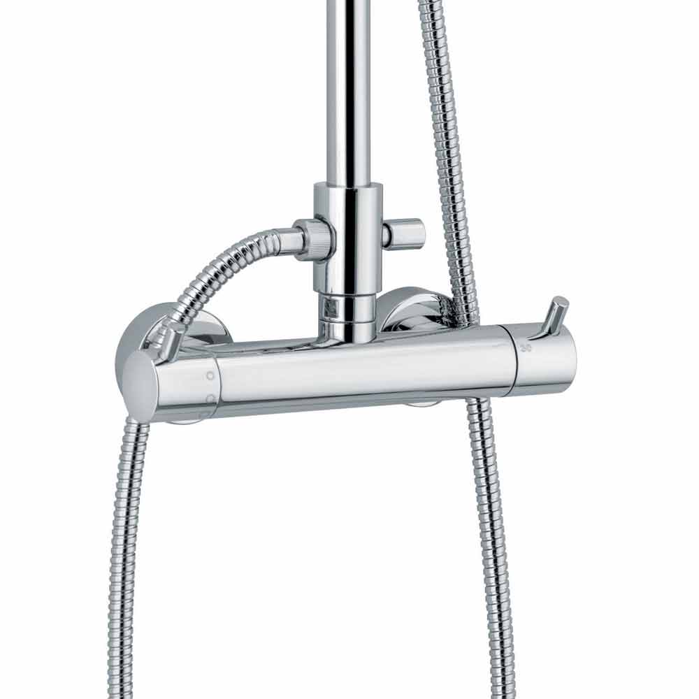 Columna de ducha con mezclador termostático fabricada en latón cromado con accesorios en acero inoxidable y ABS .