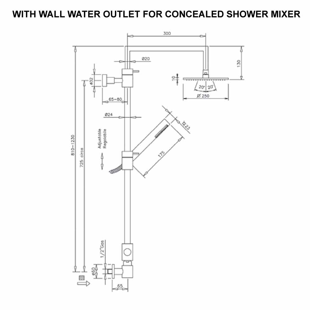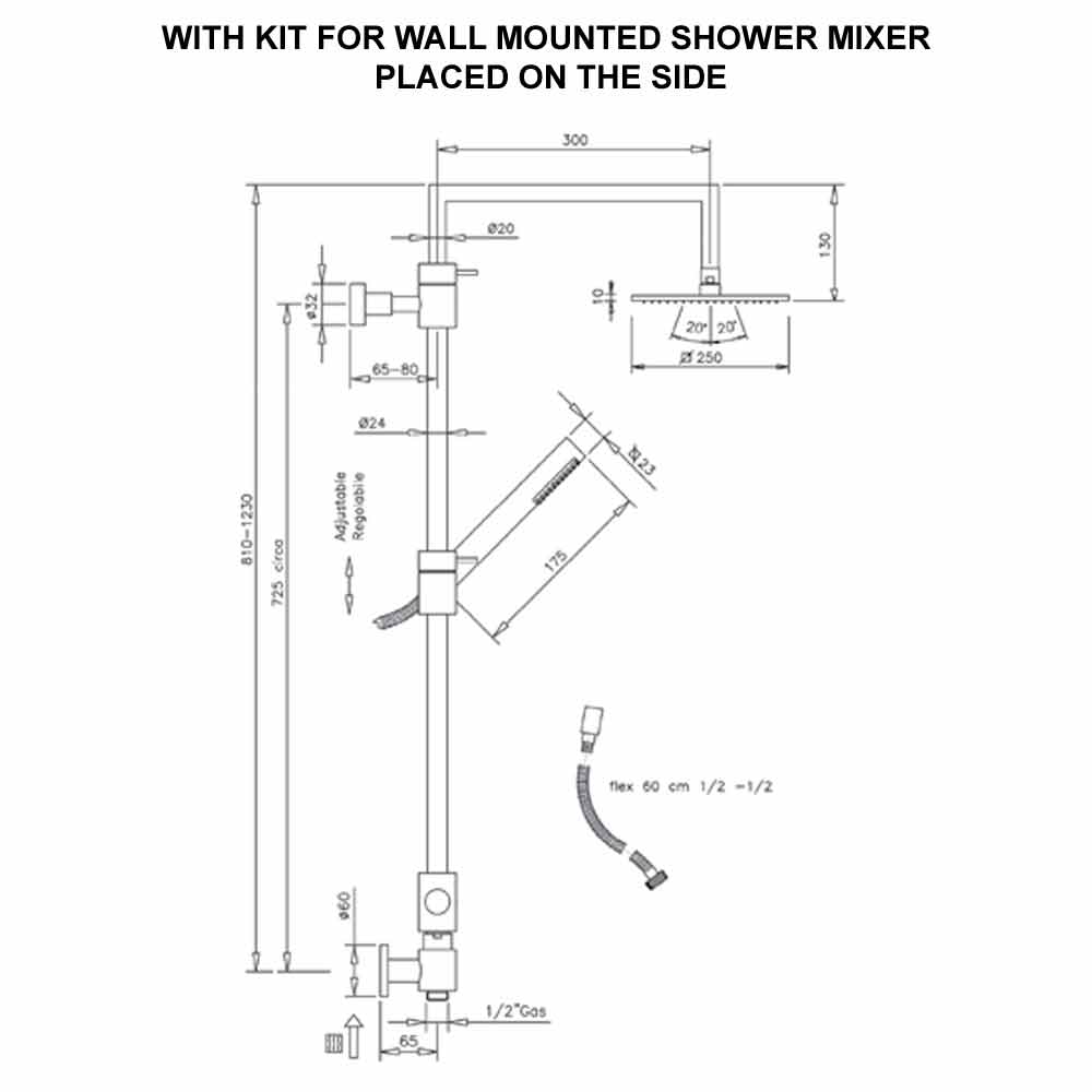 con kit para mezclador exterior de ducha cuadrado colocado lateralmente;