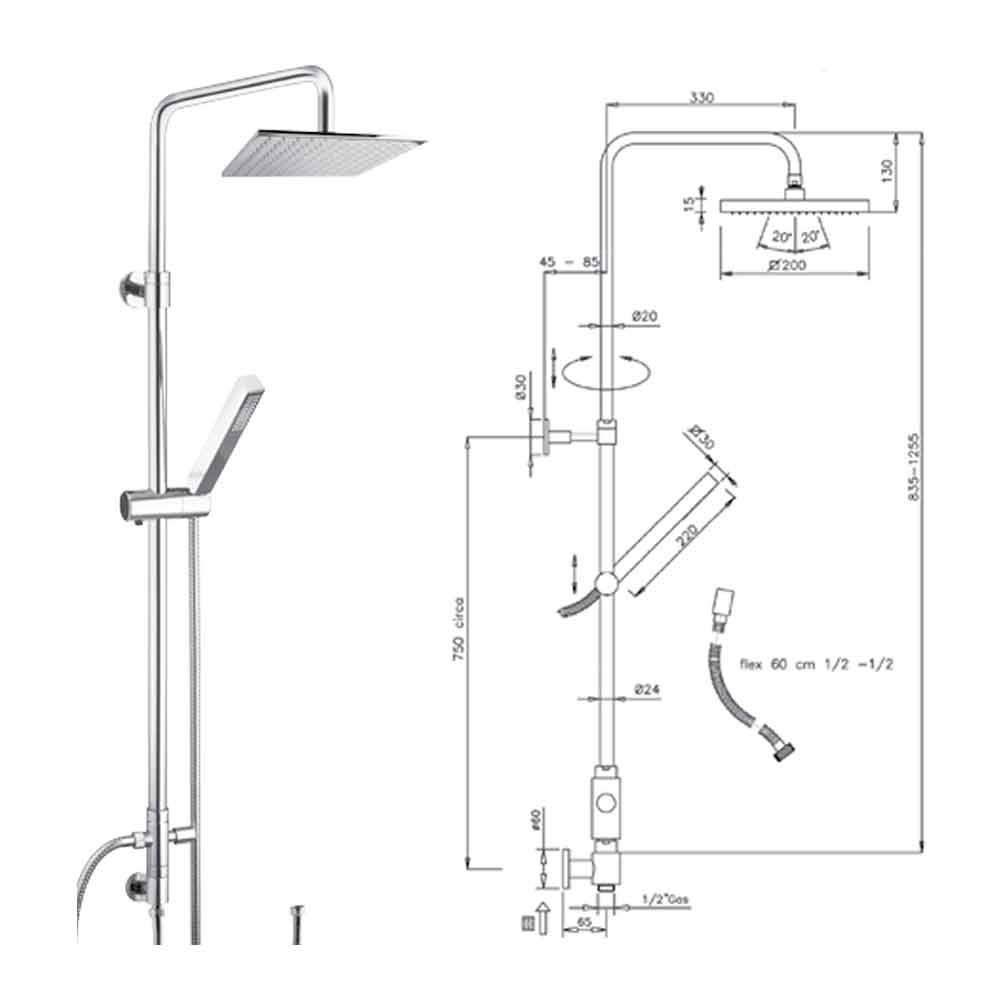 con kit para mezclador exterior de ducha cuadrado colocado lateralmente;