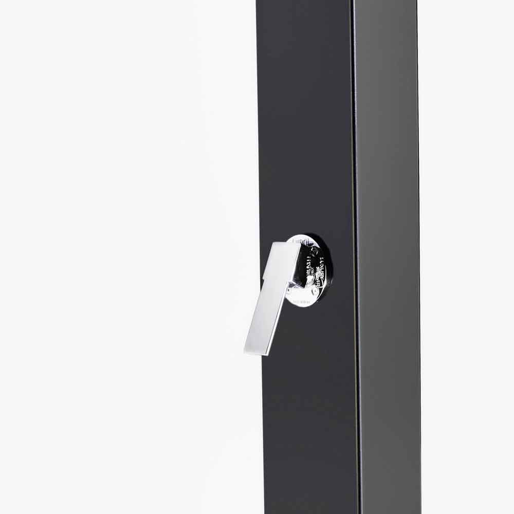 acero inoxidable AISI 304 (espesor 3mm) pintado al horno en acabado negro y brazo rociador en