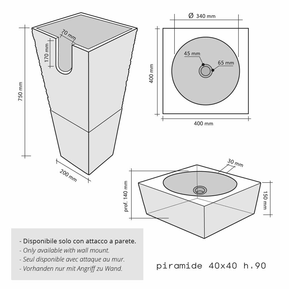 Lavabo piramidal de columna de piedra natural color beige modelo Nias