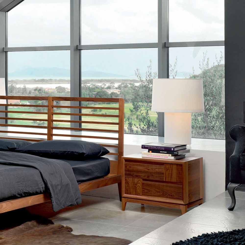 Todo el estilo y la artesanía que caracteriza a la mano de obra surgen en esta excelente solución para el área de la noche. El suntuoso baúl realza las características de la madera de nogal maciza y descansa en los pies que pueden estar hechos de madera y de acero.