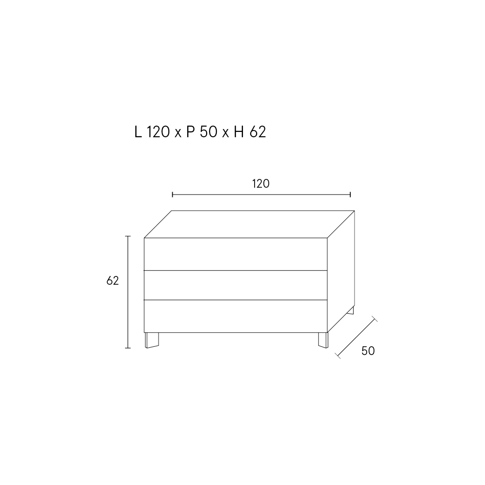 La cómoda está equipada con 3 amplios cajones , ideales para organizar ropa de cama y objetos personales, garantizando funcionalidad y orden sin sacrificar la estética.