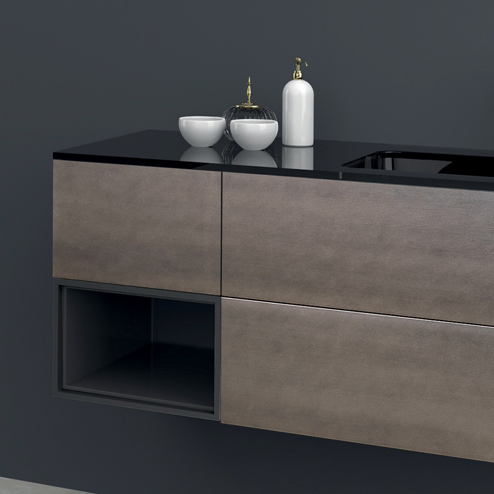 composición de mueble de baño se caracteriza por la pureza de las líneas y el acabado altamente refinado.
