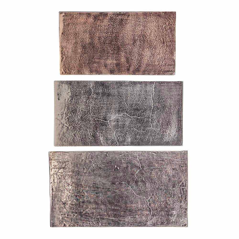 Composición de 3 mesas de centro rectangulares en aluminio y acero.