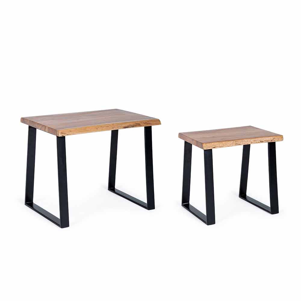 Pareja de mesas de centro modernas en madera de acacia y acero.