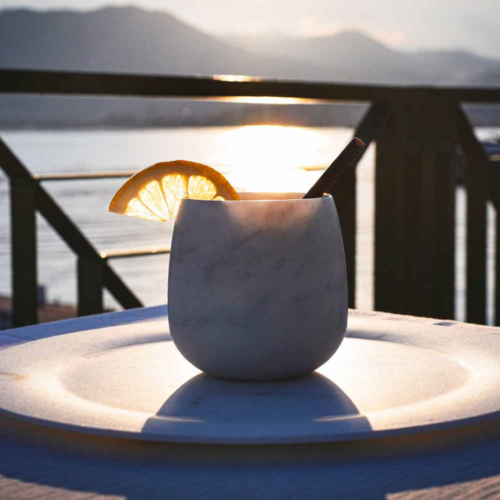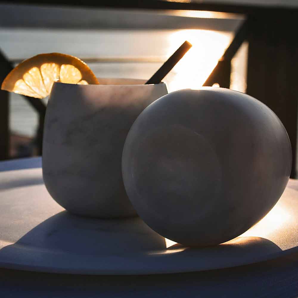 NB : debido a la porosidad característica del mármol, no se recomienda verter bebidas de colores en su interior para preservar mejor el tono blanco natural del mármol.