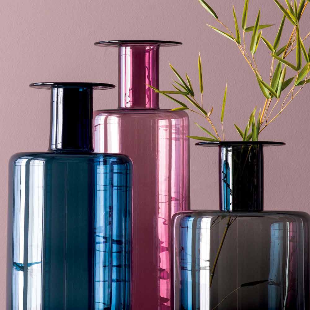Composición moderna de 3jarrones decorativos de interior fabricados en cristal ahumado, azul y amatista. De las maravillas del color y las formas simples y lineales surge una solución de decoración capaz de enriquecer cualquier ambiente con su personalidad explosivapara un resultado excéntrico y versátil . Ideales para ser utilizados tanto como maceteros como simples elementos decorativos , estos tres elementos encarnan estilo y contemporaneidad para un resultado atemporal capaz de asombrar.