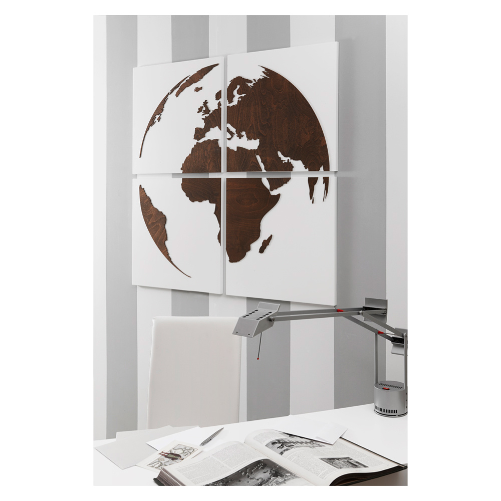 Composición que representa el mundo realizada en madera blanca mate y decoración aplicada en madera wengé.
