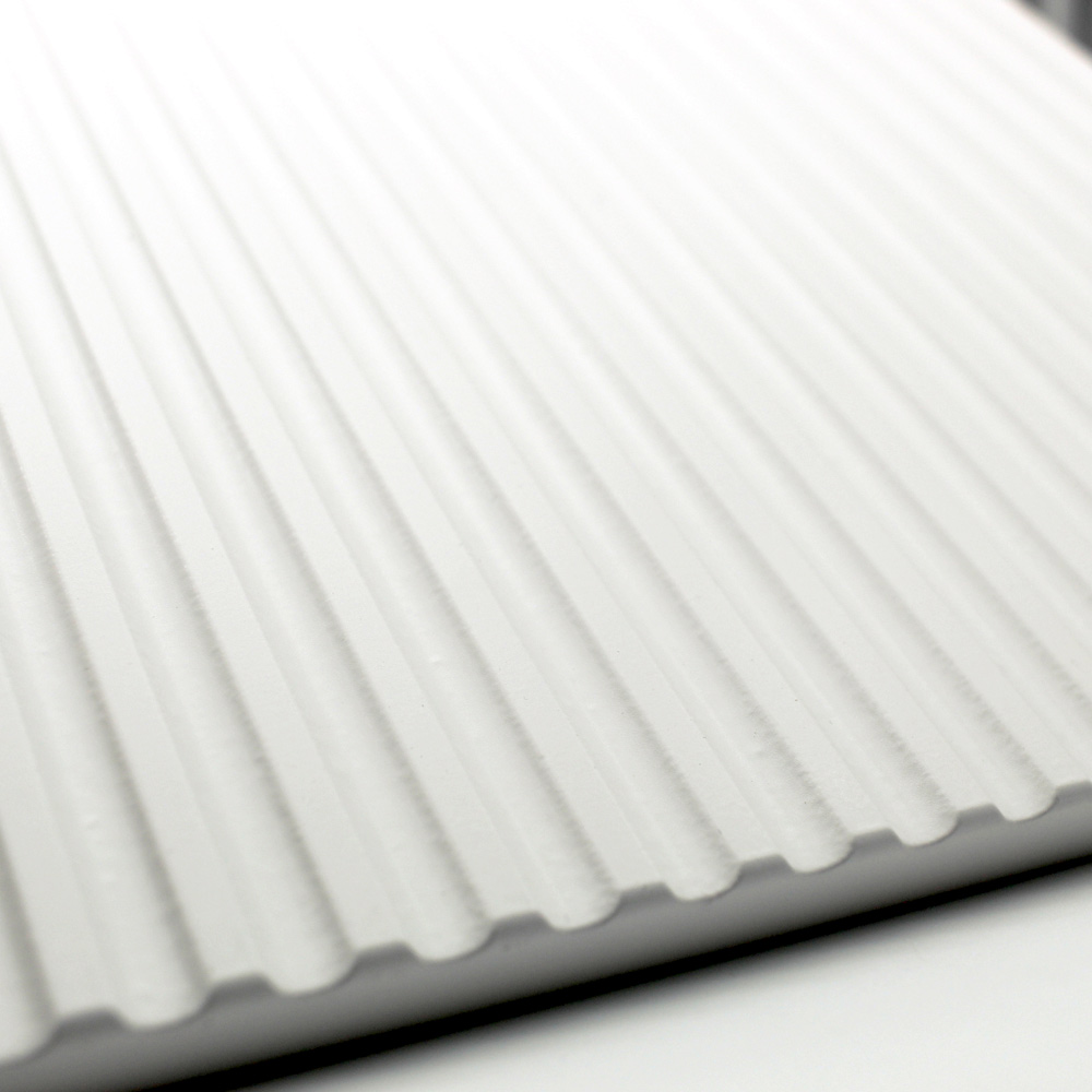Composición de baño íntegramente fabricada en Italia compuesta por base con 2 cajones en MDF blanco acanalado con hueco para el sifón a la derecha, lavabo de resina blanca mate, espejo con luz LED perimetral en tres lados y balda táctil y perfilada en MDF blanco. Esta composición de baño fue creada para combinar estilo moderno con funcionalidad para poder dar respuesta a diferentes necesidades de diseño y poder dar un toque único al espacio. Los acabados sencillos y lineales hacen que este mueble sea elegante y chic al mismo tiempo y se fusionan con la gran calidad y resistencia de los materiales utilizados para su creación.