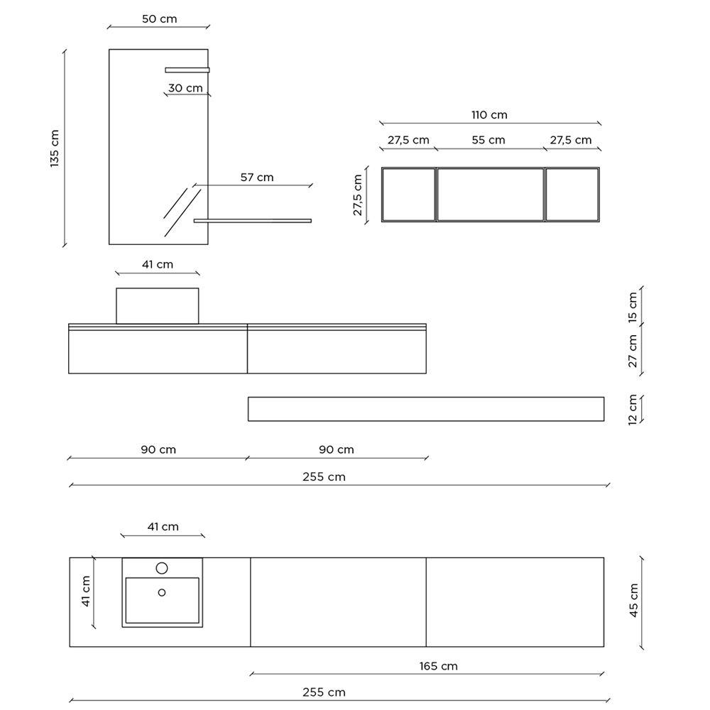 Lavabo: Largo 41 cm x Alto 15 cm x Fondo 41 cm