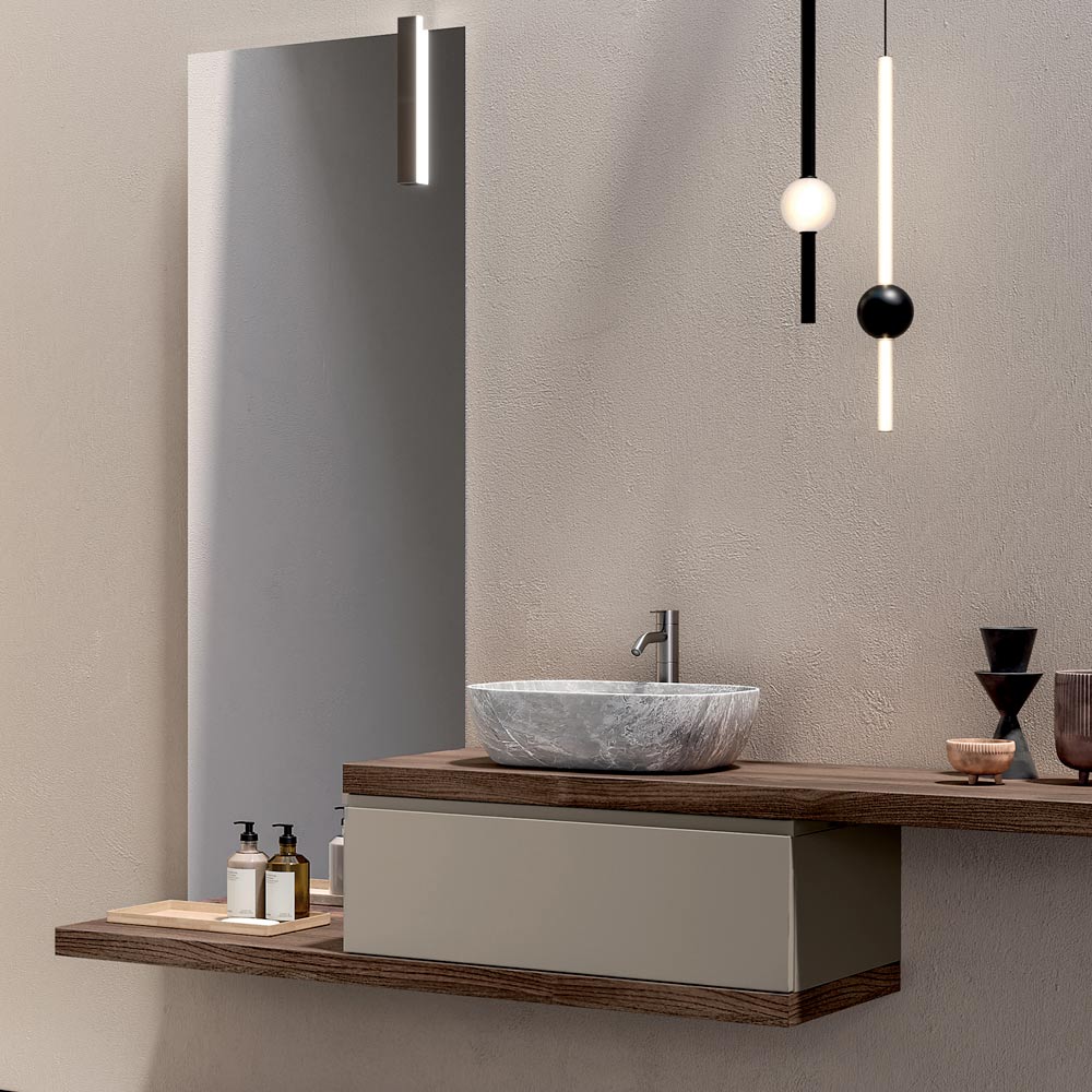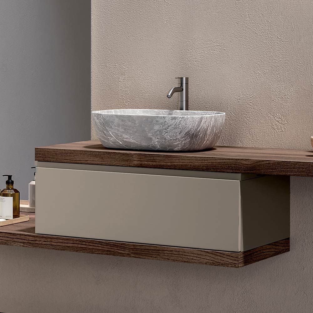 Una solución de baño completa diseñada para quienes desean un mueble de baño suspendido moderno , caracterizado por acabados cálidos, delicados contrastes y una fuerte identidad estética.