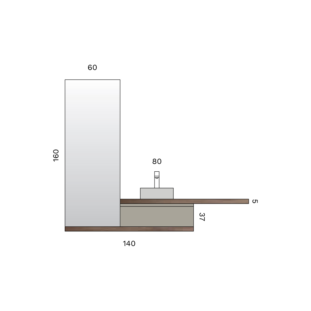 El espejo de 160x60 amplifica la luminosidad de la estancia, mientras que la lámpara LED con acabado cromado asegura una iluminación precisa y elegante, ideal para la zona del lavabo.