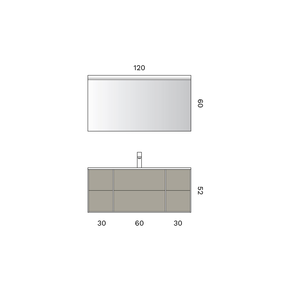 Una composición de baño contemporánea que combina a la perfección elegancia y funcionalidad. El acabado gris paloma mate de los armarios de pared crea una atmósfera sofisticada y relajante, ideal para espacios modernos y refinados.