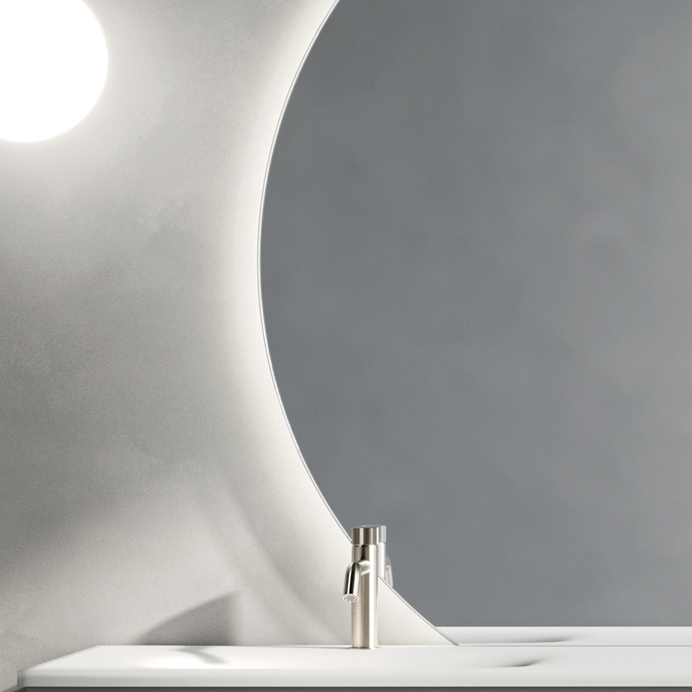 Completando el look está el espejo LED circular, que difunde una luz suave y uniforme, mejorando la funcionalidad del área del lavabo y ayudando a crear un ambiente acogedor y relajante.