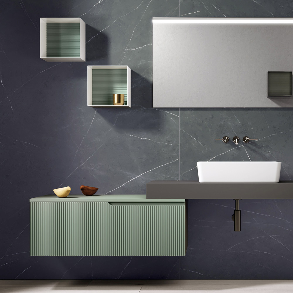 Composición de baño en MDF acanalado verde salvia Made in Italy