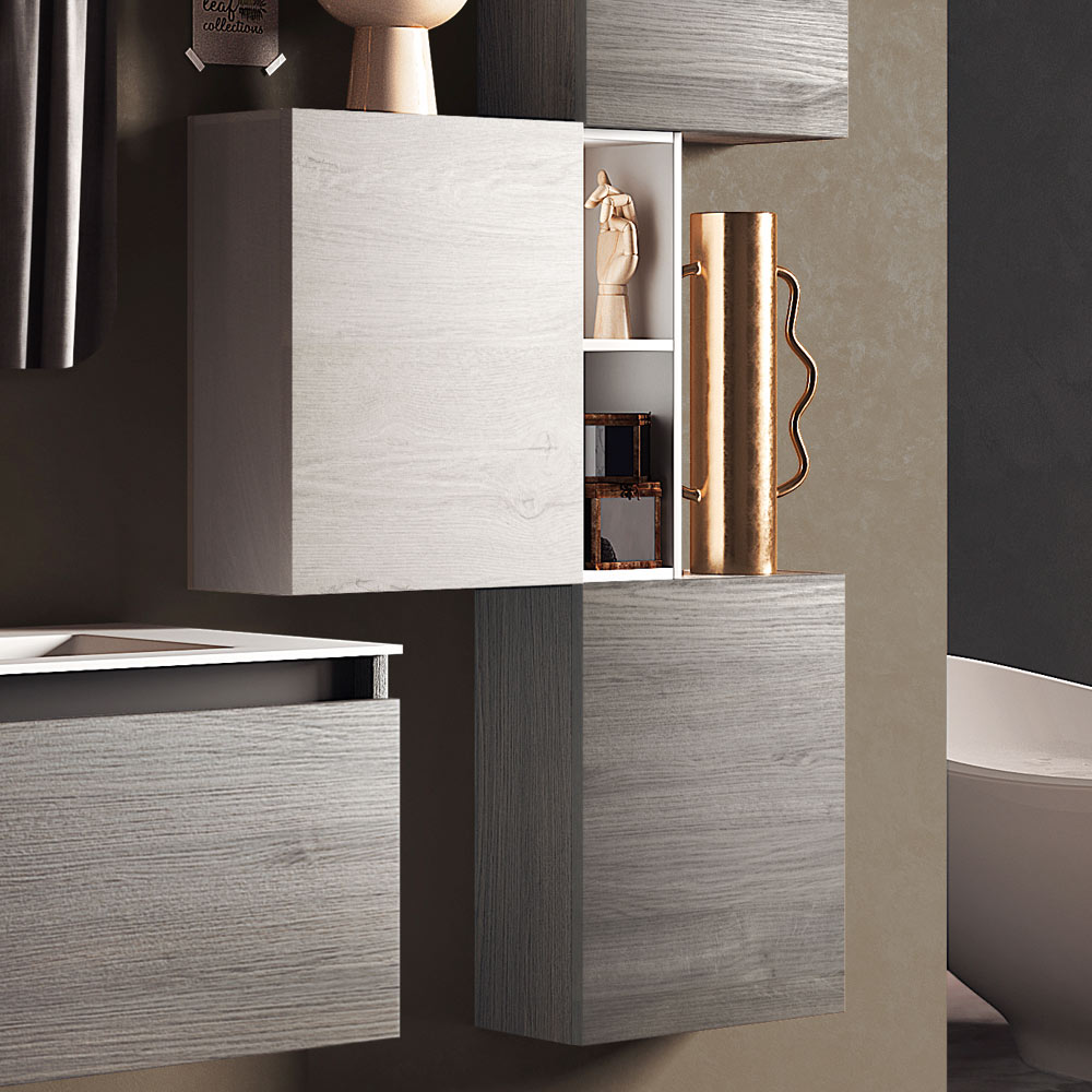 Mobiliario de baño único y sofisticado que aporta a la estancia un ambiente elegante y refinado. Gracias a la elección de los materiales se garantiza una excelente calidad y resistencia incluso en el tiempo.