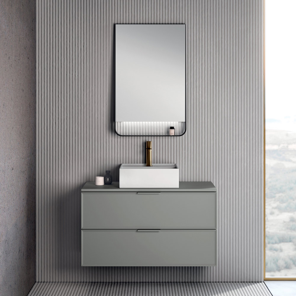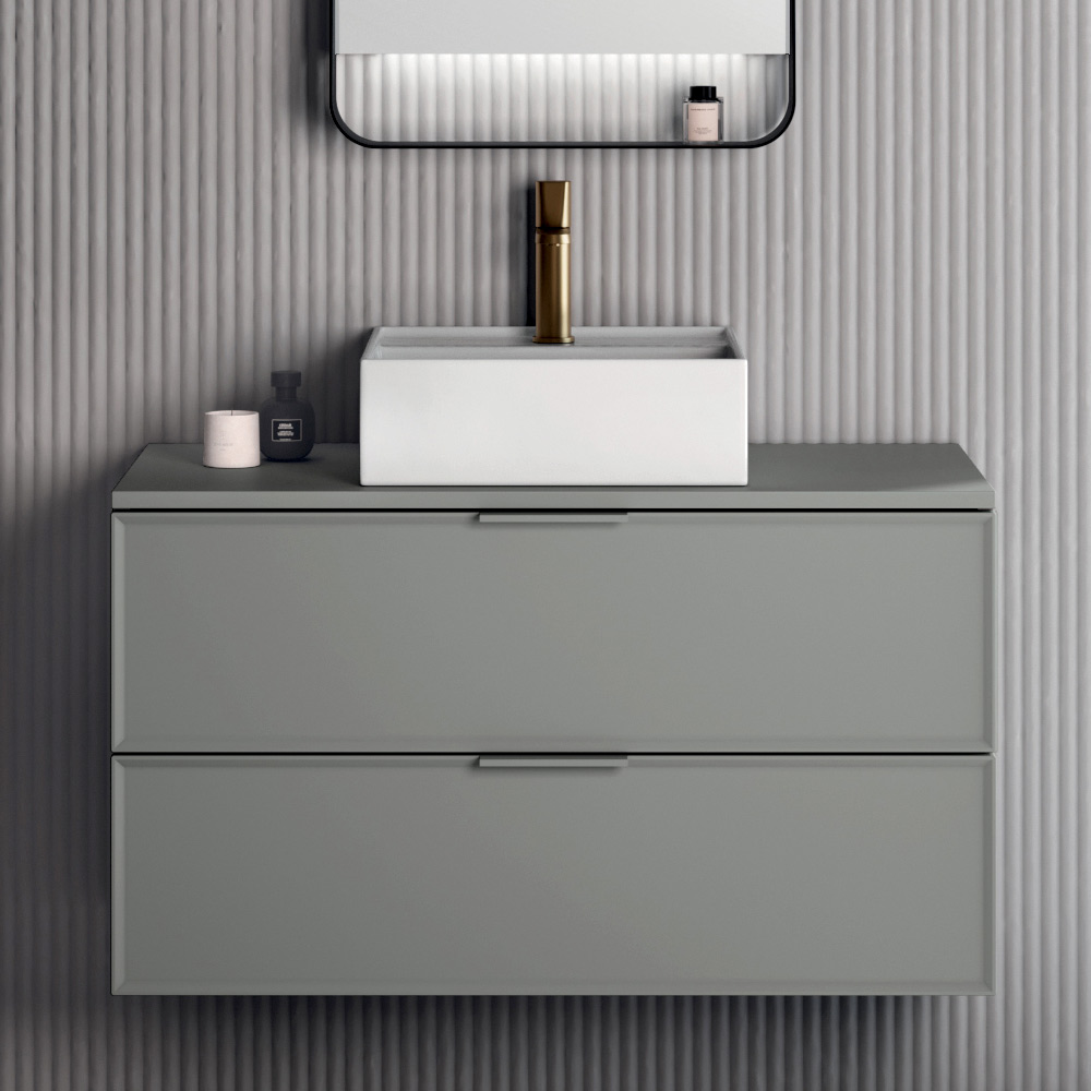 Una composición de baño moderna y refinada con un carácter sencillo y elegante, ideal para espacios contemporáneos y minimalistas. El acabado gris mate aporta sobriedad y versatilidad, adaptándose fácilmente a diversos estilos de interiorismo.