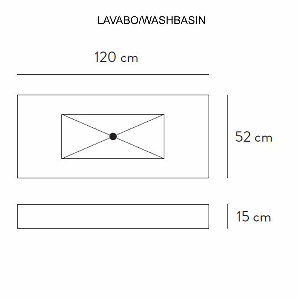 consola suspendida con lavabo central integrado: An 120 x Pr 52 x Al 15 cm