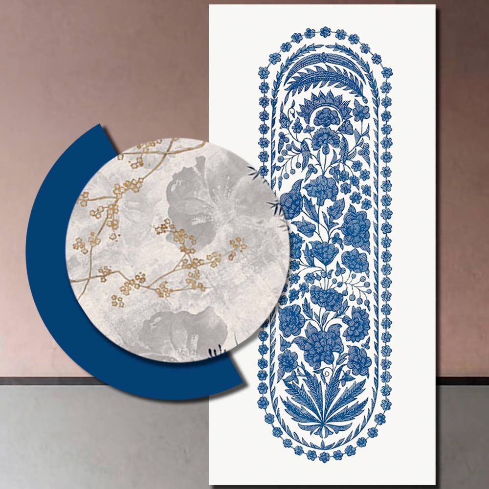 Composición de paneles de madera, 1 rectangular con estampado de decoración abstracta y 1 redondo con estampado de ramas, hojas y flores y detalle de media luna Con este cuadro queremos dotar a la estancia de una atmósfera delicada y sofisticada en la que se crean juegos únicos de líneas y colores que hacen que la composición sea perfecta para completar el mobiliario de cualquier ambiente. Fue fabricado íntegramente en Italia con la selección de los mejores materiales y con cuidado y atención en cada proceso de producción.