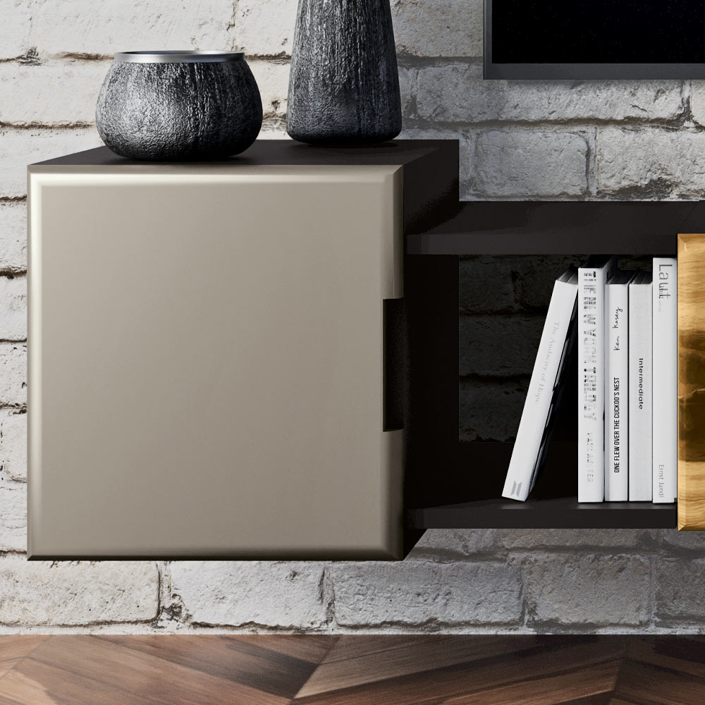 - mueble alto con puerta de apertura izquierda con perfiles en pastilla de jabón, acabado NÍQUEL + CARBONO, cuerpo y frentes en MDF
